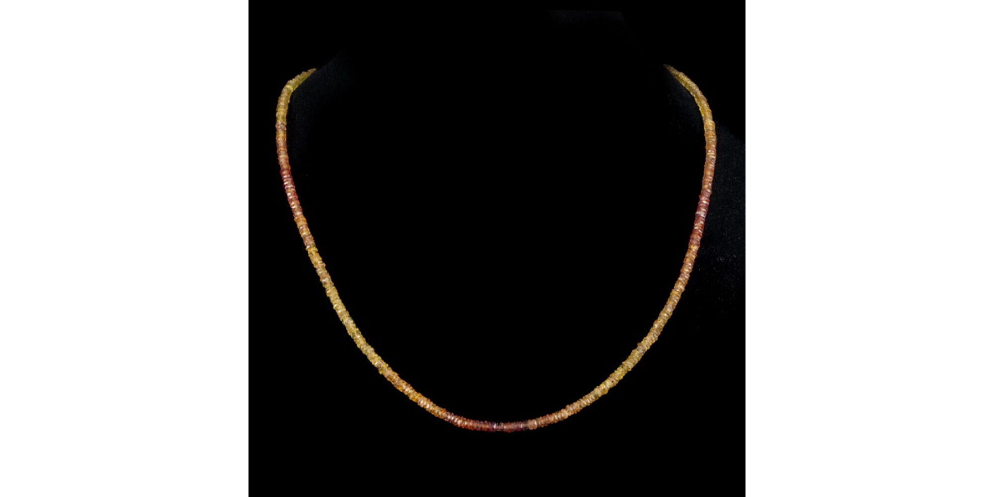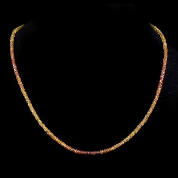 Nyaklánc sárga zafír szemekből, 925-ös ezüst kapocs, 45 cm hosszú, fűzött fazettált sárga zafír szemek
