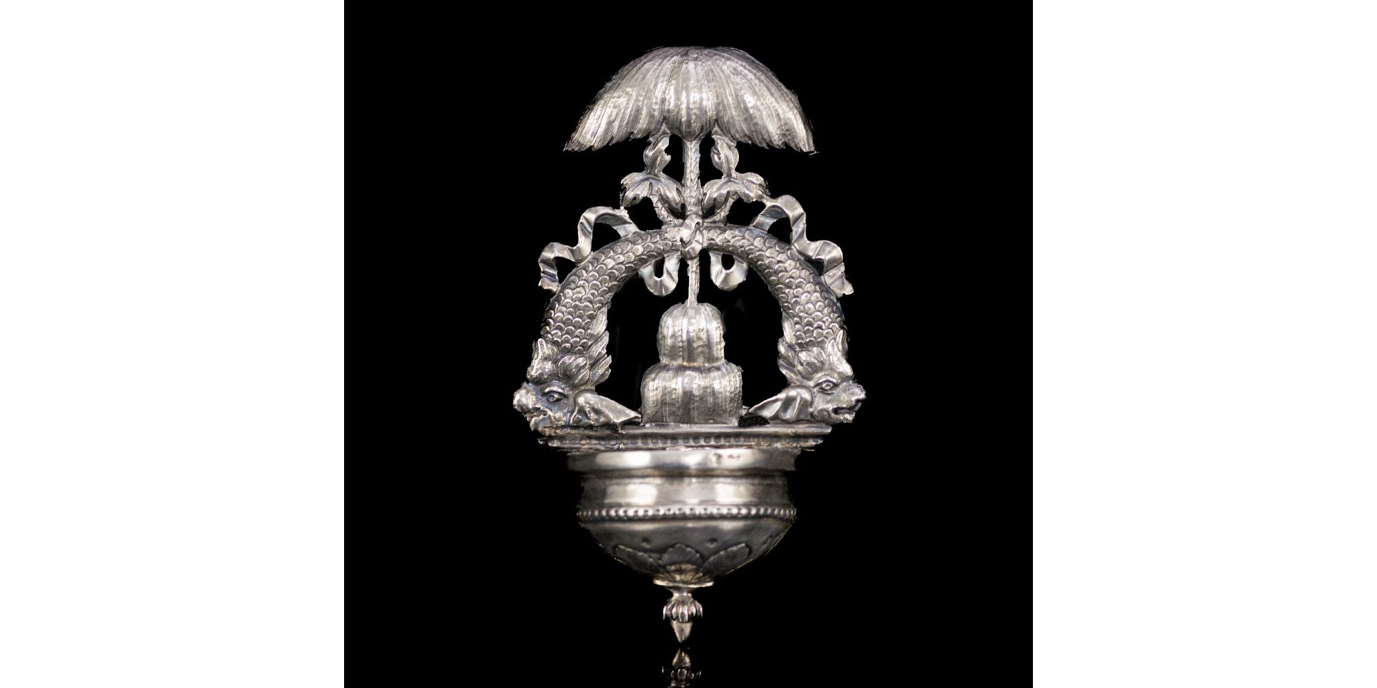 Olasz antik ezüst szenteltvíztartó (1810-1872) delfinekkel