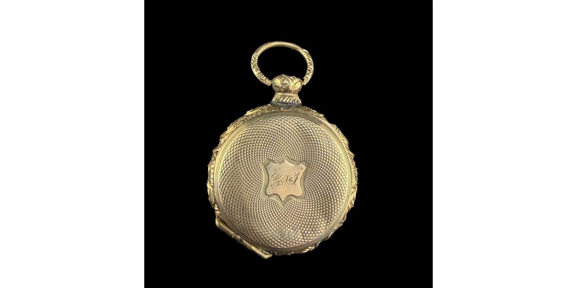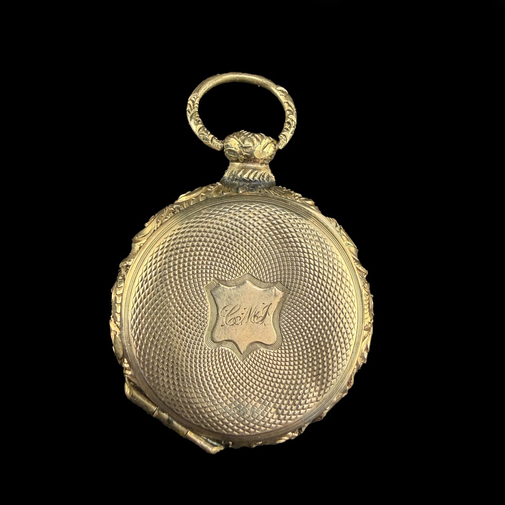 Gilosált aranyozott zsebóratokban páros dagerotípia női és férfi portéval. Méretei: 4,5 x d: 3 cm. XIX. század közepe.